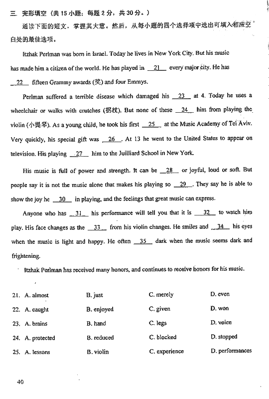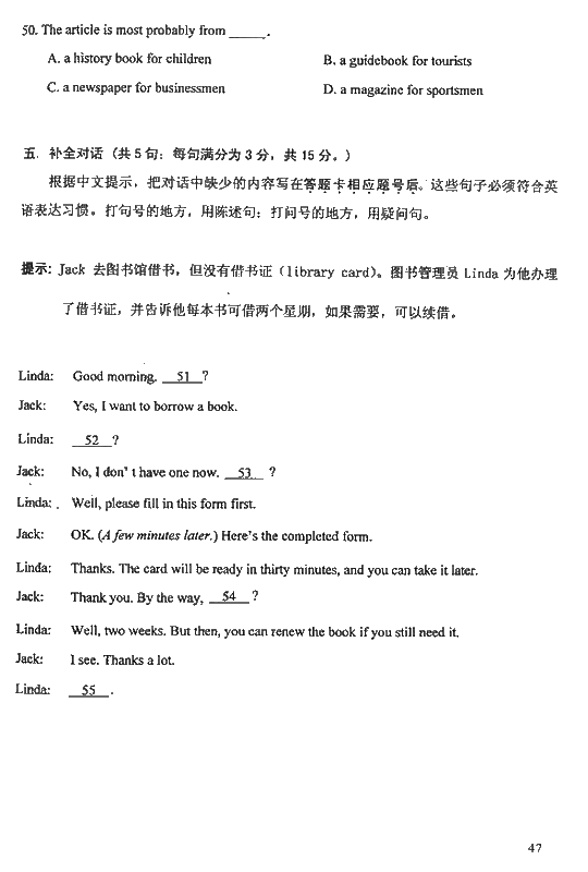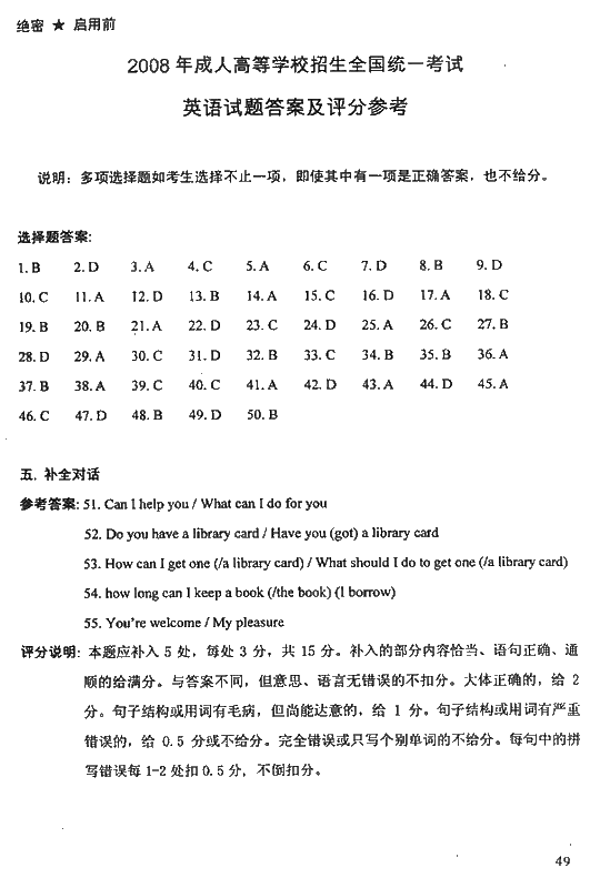 2008成人高考高起专考试(英语)试题及答案2007-11-21 本文被阅读 2651 次