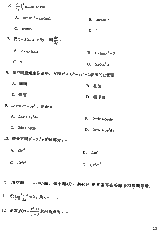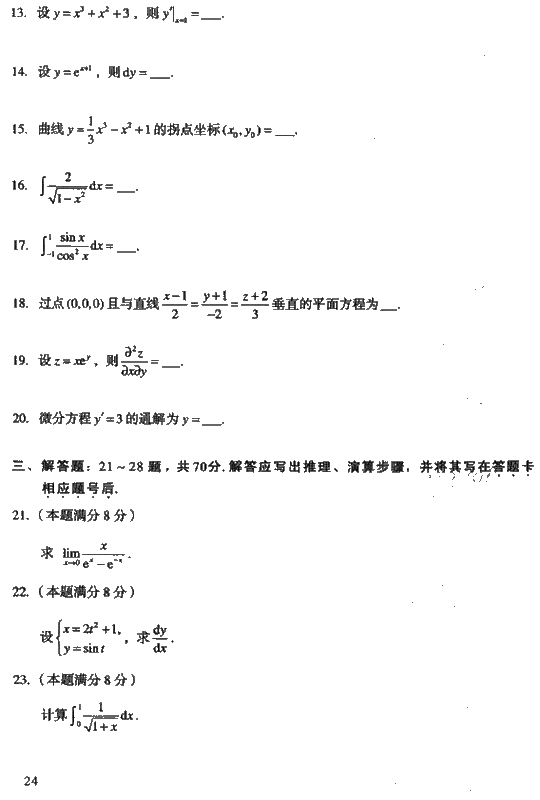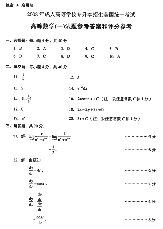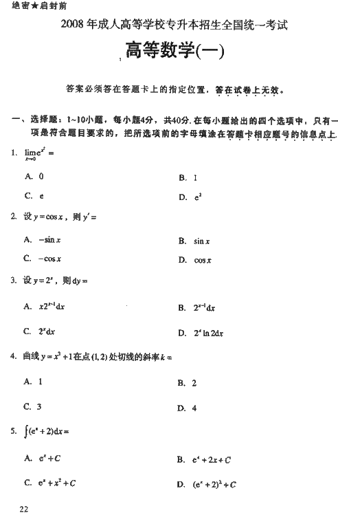 2008成人高考专升本考试(高数一)试题及答案2008-11-8 本文被阅读 2716 次