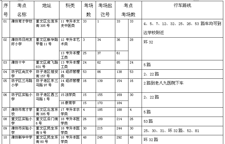 2009成人高考潍坊考区考场安排及到达路线2009-10-13 本文被阅读 2922 次