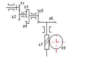 四、已知一定轴轮系如图所示,已知Z1=40,Z2=80,Z3=20,Z4=60,Z5=25,Z6=50,Z7=3,Z8=30,n1=1440r/min,求(1)轮系的传动比;(2)末轮的转速n8;(3)假定轮1的转向如图,在图中标出各轮的转向。 (15分)