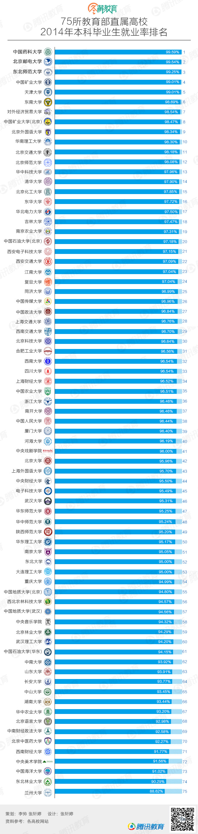 75所部属高校本科就业率排名:中国医科大学居首2015-6-4 本文被阅读 1189 次