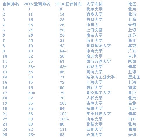 以上内容转自腾讯新闻,如有不妥,可联系删除QS亚洲大学排名发布 大陆25所高校进100强2015-6-10 本文被阅读 1221 次